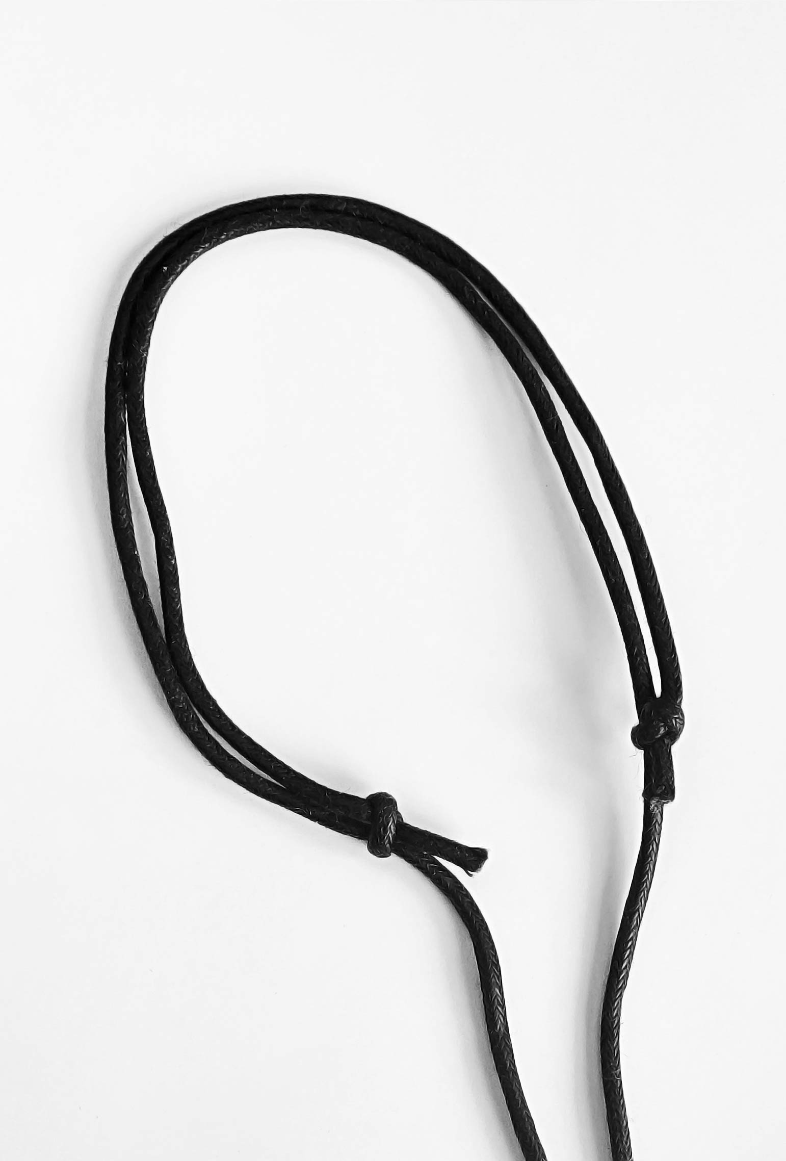 Pendant: approx. 4.5 x 3 cm (H x W). Chain: textile (black), approx. 86 cm total length (adjustable in length).
