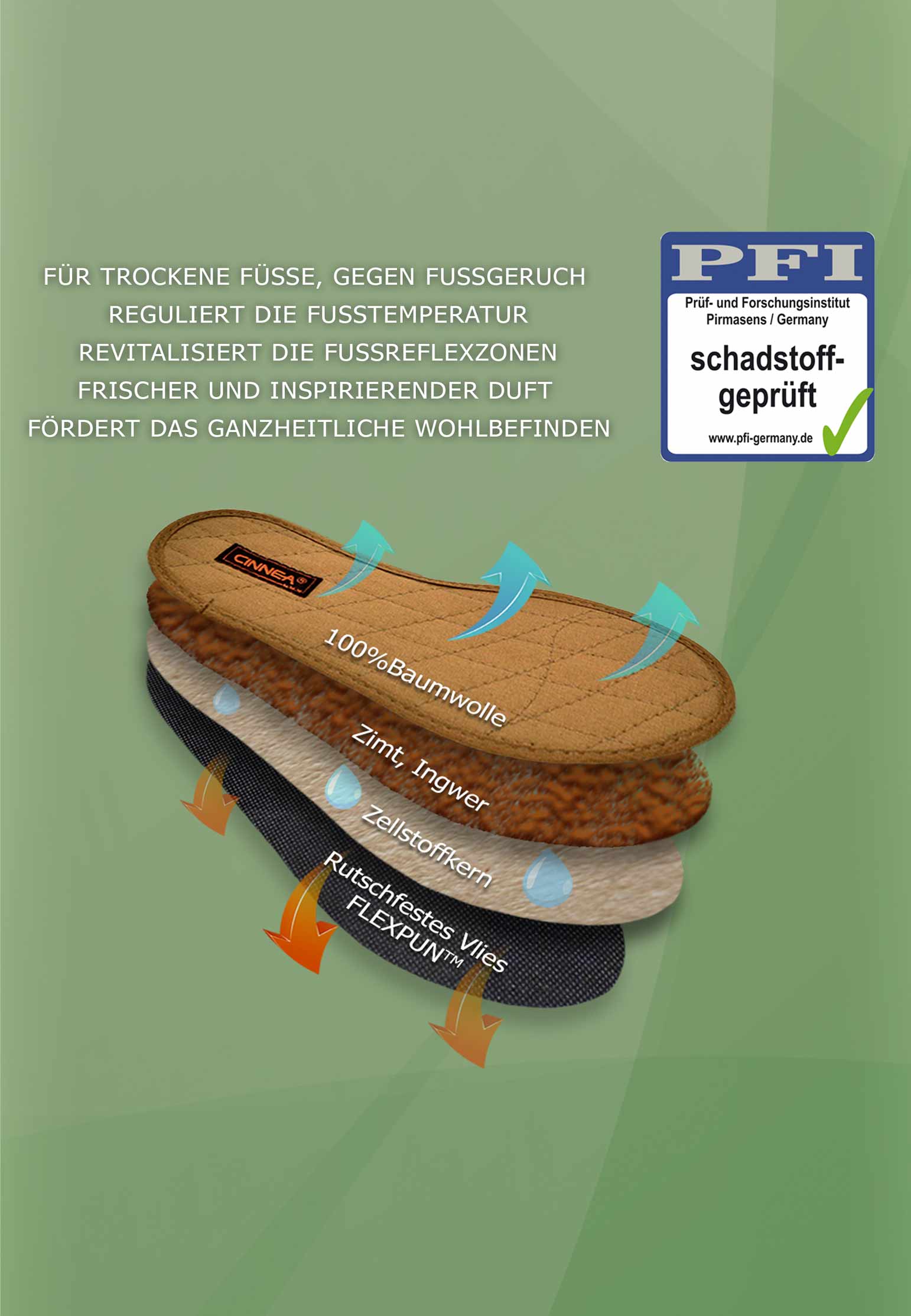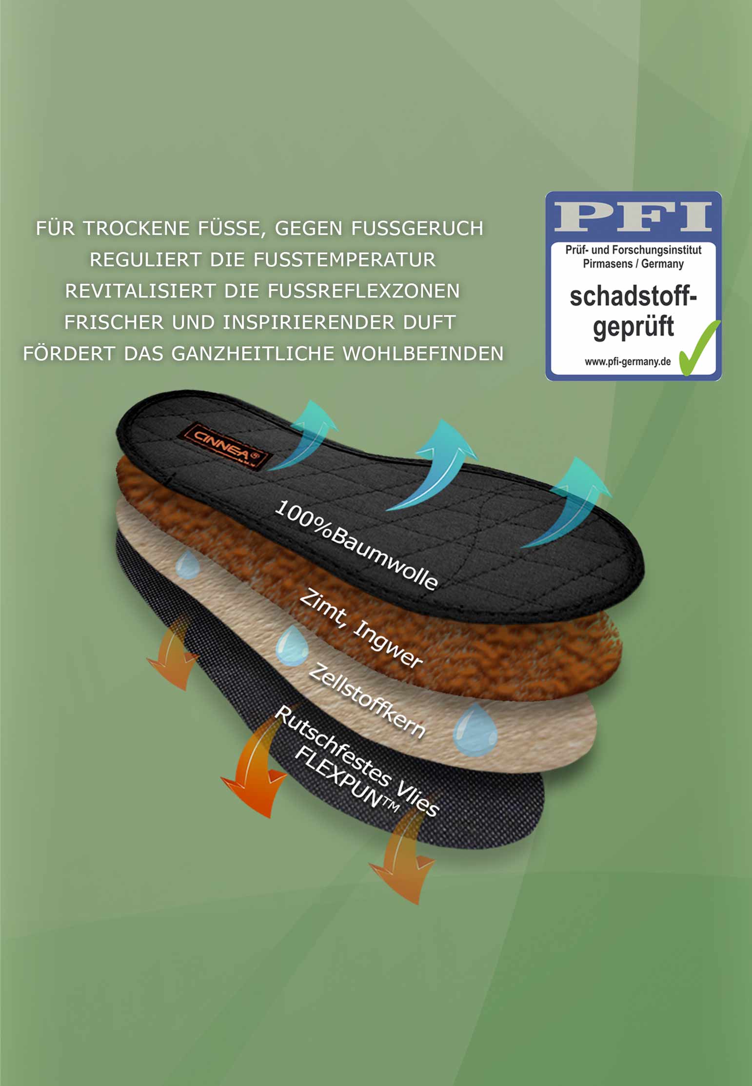Jetzt bestellen und die wohltuenden Vorteile der Cinnea Zimtsohlen genießen – für ein erfrischtes und gepflegtes Gefühl den ganzen Tag.