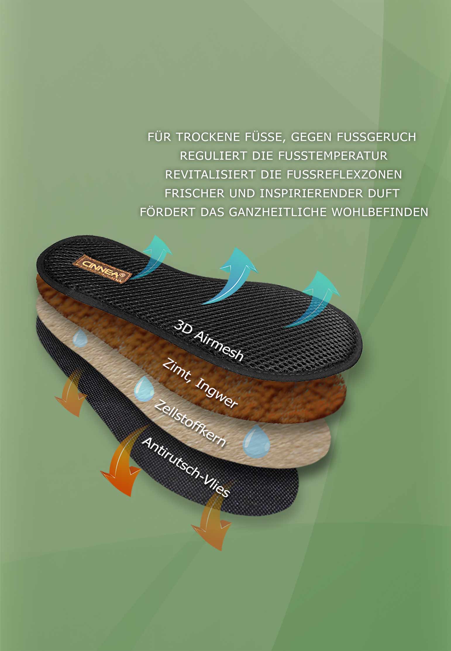 CINNEA 3D-SOFT Zimt-Einlegesohlen, 4 Paar Vorteilspack – Natürliche Frische und nachhaltige Fußpflege