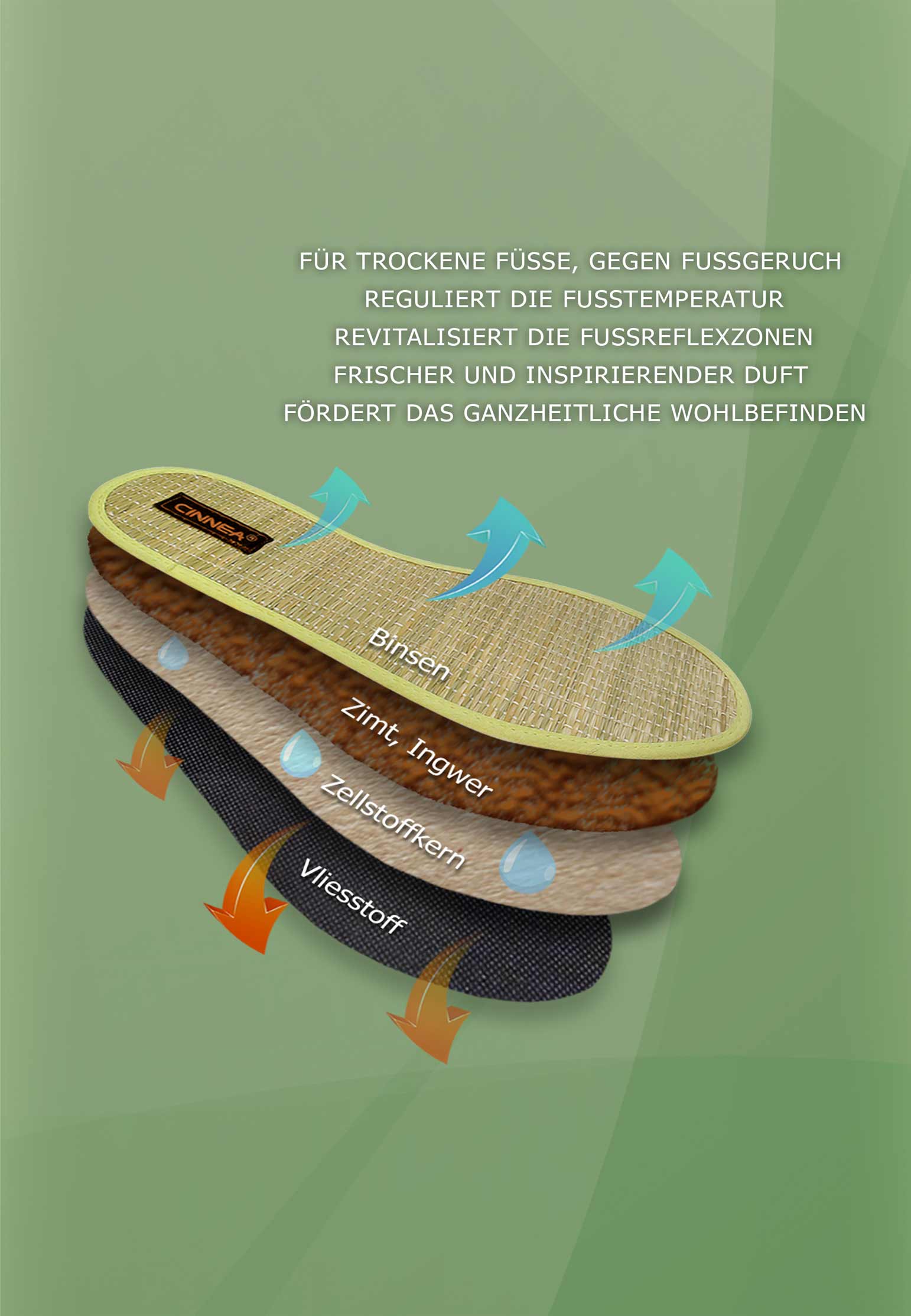 Jetzt bestellen und die wohltuenden Vorteile der CINNEA Zimtsohlen genießen – für ein erfrischtes und gepflegtes Gefühl den ganzen Tag.