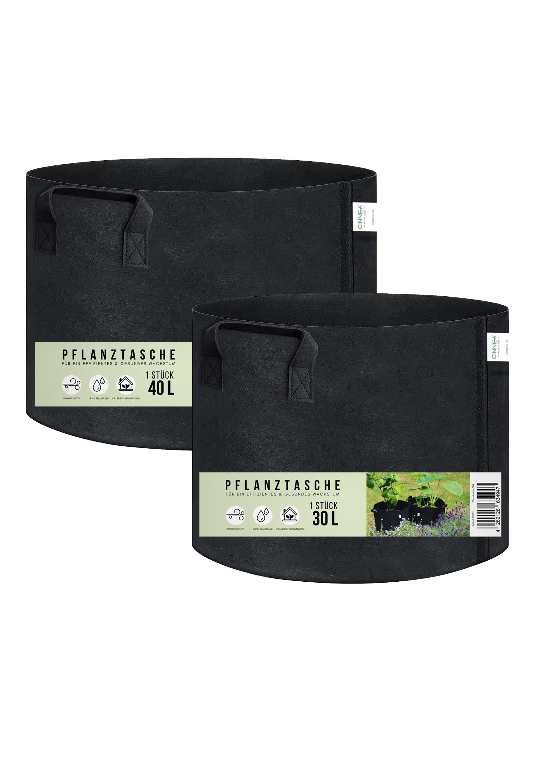 Pflanztasche als 2er Set mit Preisvorteil: 1 Stück 30 L und 1 Stück 40 L.