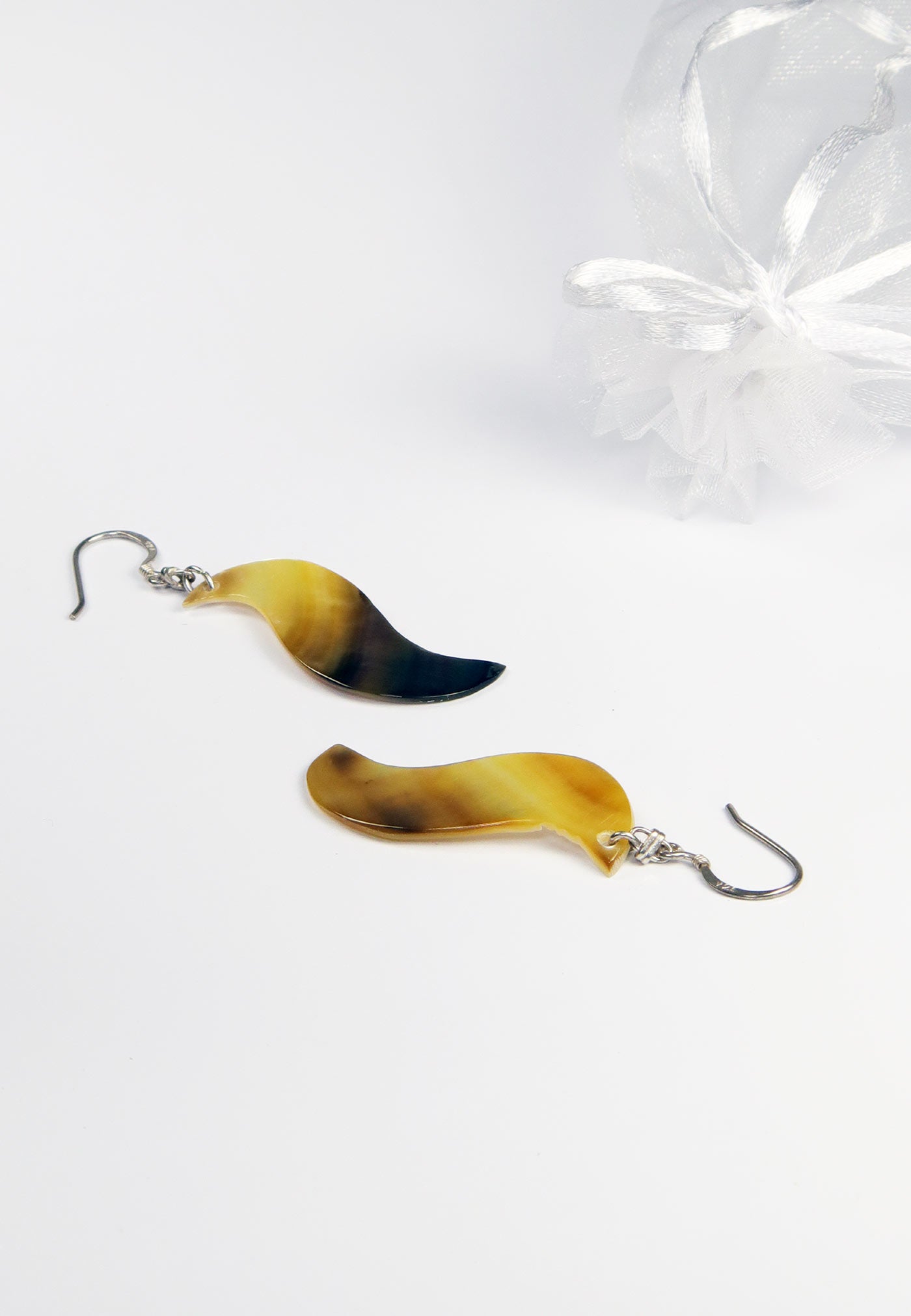 Diese wunderschönen Ohrhänger aus echtem Perlmutt schimmern bei jeder Bewegung in dezenten, irisierenden Gold-Brauntönen. Eine schwungvolle Welle ziert diesen Ohrschmuck und seine Trägerin, dynamisch und flott. Sie bringen deinen Geist auf Trab und sollen zu neuer, schöpferischer Energie verleiten. Im Sonnenlicht strahlen diese wellenförmigen Ohrhänger effektvoll in ihren Farbnuancen, was für ein Eyecatcher!