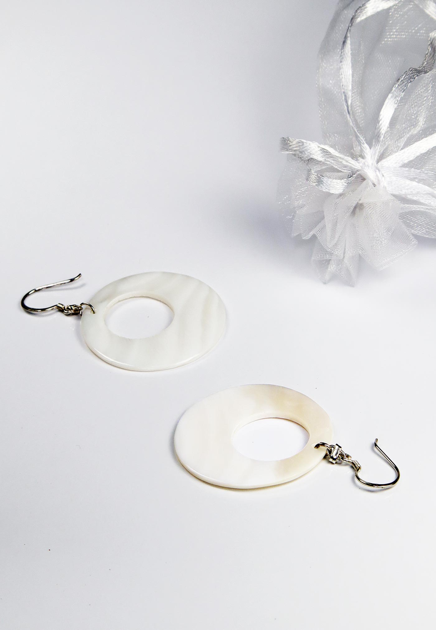 Diese wunderschönen Ohrringe aus Perlmutt schimmern bei jeder Bewegung in dezenten, irisierenden Weißtönen. Sie symbolisieren einen Kreis, das Symbol der Unendlichkeit und das unendliche Leben. Ebenso steht der Kreis für Himmel und Universum, als unendliche Linie, der Wiederkehr, der Schutz gegen böse Geister. Du fühlst dich manchmal schutzlos oder brauchst Kraft aus dem Universum? Lass dich mithilfe dieses wunderschönen Naturschmucks inspirieren. Fühle dich mit diesen naturweißen und schimmernden Perlmutt-Ohrhängern doppelt gut!